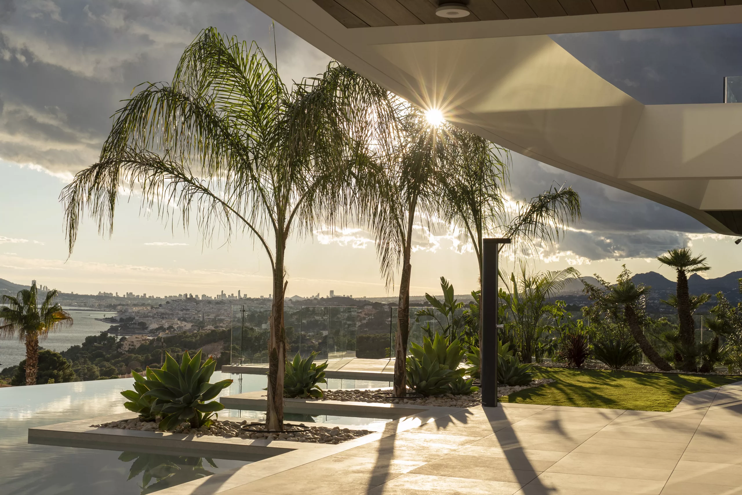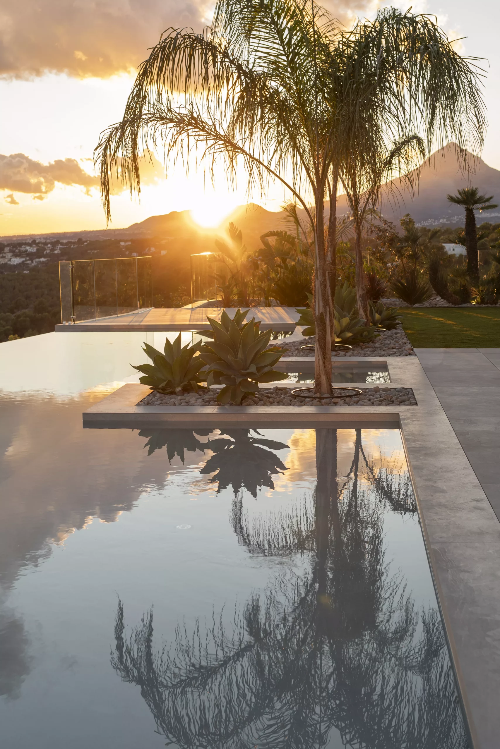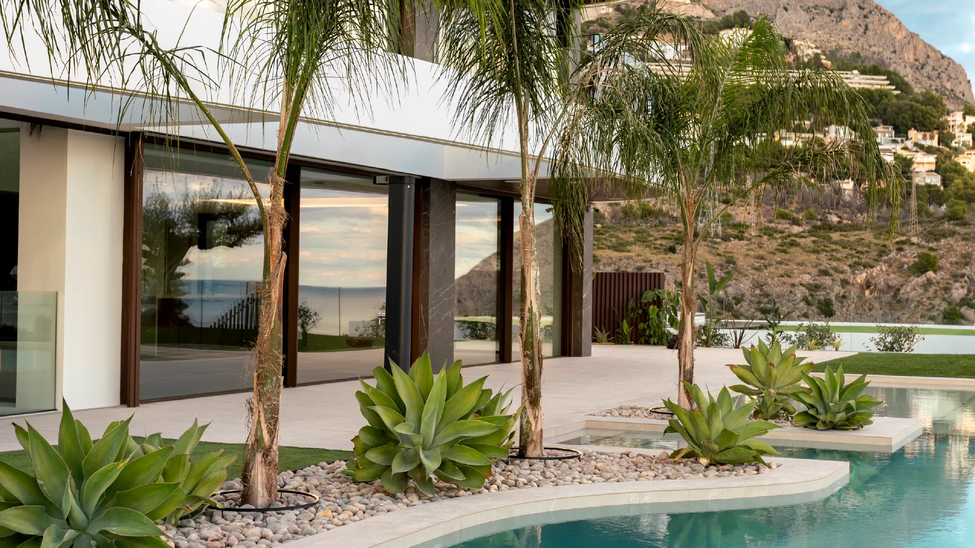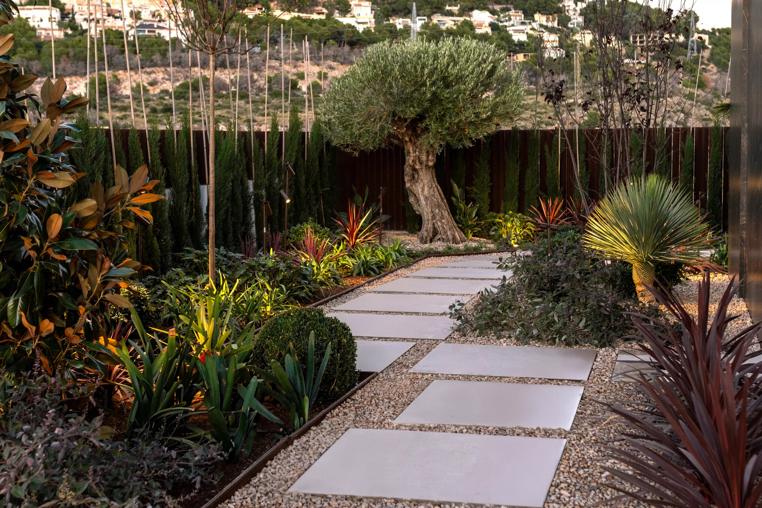 Proyecto paisajístico en Altea inspirado en un estilo mediterráneo contemporáneo con sutiles aires tropicales, concebido para combinar estética, funcionalidad y bajo mantenimiento. El jardín integra diferentes variedades de palmeras, olivos ejemplares y vegetación de porte medio y grande, seleccionando especies resistentes y adaptadas al clima local para garantizar sostenibilidad y durabilidad.